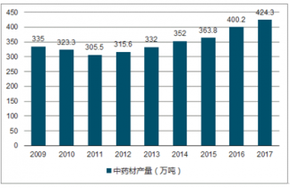 2009-2017年中國(guó)中藥材行業(yè)產(chǎn)量情況