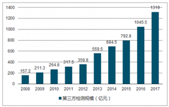 2008-2017年中國(guó)第三方檢測(cè)行業(yè)規(guī)模