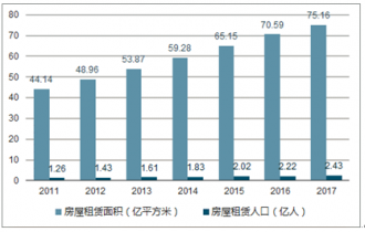 2017年我國房屋租賃行業(yè)租賃面積達(dá)到了75.16億平方米,租賃人口數(shù)量達(dá)到了2.43億人。