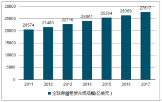 2011-2017年全球房屋租賃市場規(guī)模走勢圖