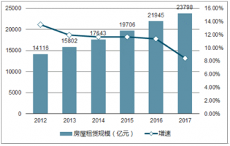圖表:2017-2019年中國房屋租賃行業(yè)市場規(guī)模