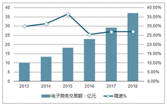 2013-2018年中國電子商務(wù)交易額統(tǒng)計及增長走勢