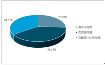 由于直流充電樁的建設(shè)成本較高、建設(shè)面積較大、不夠靈活等多方面多方面因素,市場上目前交流充電樁的占比仍然較高。截止至 2017 年 9月,直流充電樁市場占比為 26%,交直流一體充電樁占比 34.67%,交流充電樁占比近四成。