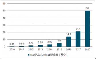 2010-2020 年中國電動汽車充電樁建設(shè)規(guī)模(單位: 萬個)