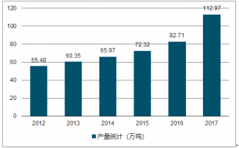 全國(guó)小龍蝦養(yǎng)殖總產(chǎn)量為112.97萬(wàn)噸,相比2016年總產(chǎn)量82.71萬(wàn)噸,增加了30.26萬(wàn)噸,同比增長(zhǎng)36.59%。數(shù)據(jù)顯示,2012-2017年我國(guó)小龍蝦產(chǎn)量不斷增長(zhǎng),從2012年的55.48萬(wàn)噸增至2017年112.97萬(wàn)噸,六年間年均復(fù)合增長(zhǎng)率為15.28%。