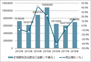 2018年1-12月中國礦物肥料及化肥出口數(shù)量為2394萬噸,同比下降0.4%;2018年1-12月中國礦物肥料及化肥出口金額為6998655千美元,同比增長(zhǎng)16.3%。