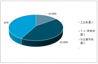 全球智能機(jī)器人企業(yè)結(jié)構(gòu)主要由工業(yè)機(jī)器人、個(gè)人/家用機(jī)器人、行業(yè)服務(wù)機(jī)器人構(gòu)成,占比分別為15%、43%、42%。