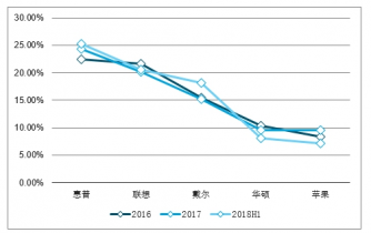 2016-2018年上半年全球主要品牌筆記本電腦出貨量占比走勢(shì)