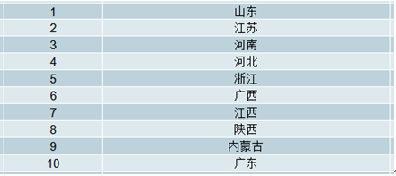 2018年商務金融行業(yè)產(chǎn)業(yè)用地拿地面積前十的省市