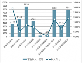 2018年上半年全國(guó)全國(guó)規(guī)模以上文化及相關(guān)產(chǎn)營(yíng)業(yè)收入及占比
