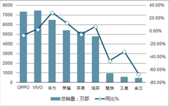 2018年全年,中國智能手機整體市場容量仍處于下滑趨勢。OPPO不負眾望的拿下了全年銷量第.一的頭把交椅,OPPO18年全面出貨量為7637w部,而它的孿生兄弟也緊跟其后,vivo18nian全滿出貨7464w部排在了第二名,華為和榮耀以6490萬和5427萬分列第三四位,同時分別實現(xiàn)了29%和13%的同比兩位數(shù)的增長;蘋果以5270萬位居第五,同比下滑5%;小米同比增長7%,以4796萬位列第六。