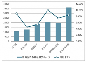 2017年全國(guó)教育經(jīng)費(fèi)總投入為42557億元,比上年增長(zhǎng)9.43%。其中,國(guó)家財(cái)政性教育經(jīng)費(fèi)為34204億元,比上年增長(zhǎng)8.94%。根據(jù)統(tǒng)計(jì)快報(bào),2017年全國(guó)幼兒園、普通小學(xué)、普通初中、普通高中、中等職業(yè)學(xué)校、普通高等學(xué)校生均教育經(jīng)費(fèi)總支出均比上年有所增長(zhǎng),增幅分別為:13.21%、6.82%、9.60%、10.70%、8.11%、9.75%。