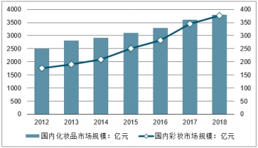 2012-2018年中國化妝品與彩妝市場規模走勢