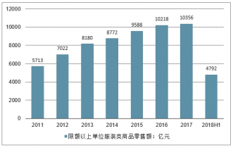 2011-2018年中國(guó)限額以上單位服裝類商品零售額走勢(shì)