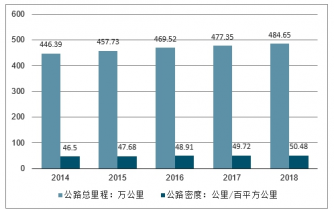 2013年全國公路總路程446.39萬公里,公路密度46.5公里/百平方公里。2019年末全國公路總里程484.65萬公里,比上年增加7.31萬公里。公路密度50.48公里/百平方公里,增加0.76公里/百平方公里。公路養(yǎng)護里程475.78萬公里,占公路總里程98.2%。