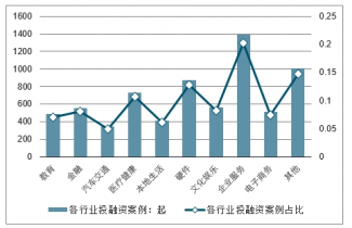 2019年我國各行業(yè)投融資案例情況(單位:起,%)