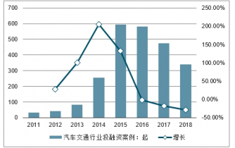 2011-2018年汽車交通行業(yè)投融資案例情況(單位:起,%)
