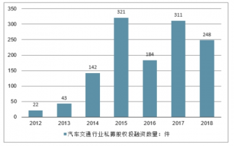 2012-2018年中國汽車交通行業(yè)私募股權(quán)投融資事件數(shù)量