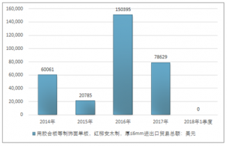2016年我國用膠合板等制飾面單板,紅柳安木制,厚≤6mm進(jìn)出口貿(mào)易總額150395美元,2017年進(jìn)出口貿(mào)易總額78629美元;2018年1季度進(jìn)出口貿(mào)易總額-美元。