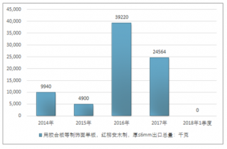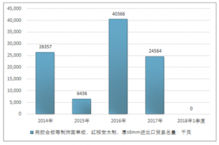 2016年我國用膠合板等制飾面單板,紅柳安木制,厚≤6mm進(jìn)出口貿(mào)易總量40366千克,2017年進(jìn)出口貿(mào)易總量24564千克;2018年1季度進(jìn)出口貿(mào)易總量-千克。