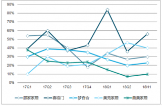分季度看,代表性家居企業(yè)18Q1/18Q2分別實現(xiàn)營收103/145億元,同比分別增長35%/24%,二季度營收增速普遍放緩,地產(chǎn)端壓力與行業(yè)競爭壓力影響逐步顯現(xiàn)。