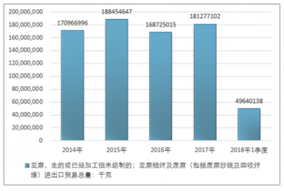 2016年我國亞麻,生的或已經(jīng)加工但未紡制的;亞麻短纖及廢麻(包括廢麻紗線及回收纖維)進(jìn)出口貿(mào)易總量168725015千克,2017年進(jìn)出口貿(mào)易總量181277102千克;2018年1季度進(jìn)出口貿(mào)易總量49640138千克。