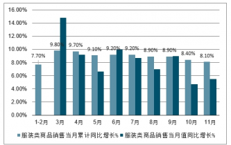 2019年1-11月服裝類商品銷售增長(zhǎng)走勢(shì)