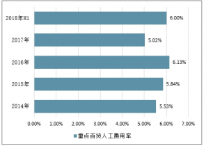 2014-2019年 半年重點(diǎn)百貨公司人工費(fèi)用率情況(%)
