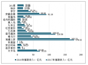 2016-2017年中國(guó)主要服裝行業(yè)企業(yè)經(jīng)營(yíng)收入對(duì)比