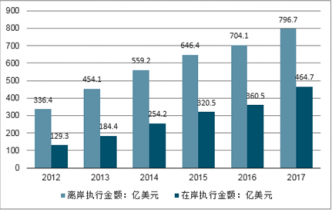 2012-2017年中國離岸/在岸服務(wù)外包執(zhí)行金額