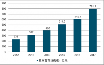 近幾年,我國(guó)夏令營(yíng)行業(yè)市場(chǎng)規(guī)模快速增長(zhǎng),從2011年的191.3億元增長(zhǎng)到2017年的791.1億元。