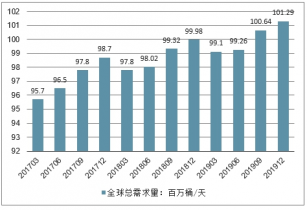 OPEC+減產(chǎn)協(xié)議達(dá)成情況下全球原油全球總需求量(單位:百萬(wàn)桶/天)