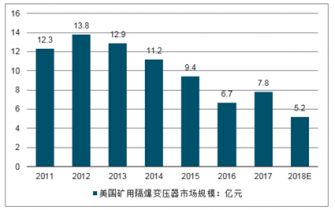 2011-2018年美國礦用隔爆變壓器行業(yè)市場(chǎng)規(guī)模