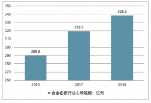圖表:2017-2019年中國合金鋁板行業市場規模