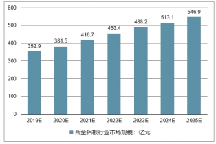 圖表:2017-2019年全球合金鋁板行業市場規模