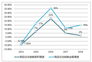 2014-2018年商品住宅銷售面積及增速走勢