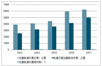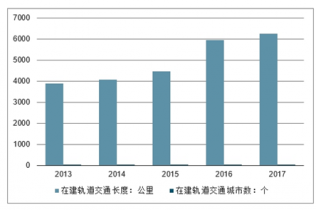 截至 2017 年,我國運營的軌道交通線路達 5022 公里,同比增長 20.9%,近五年的 CAGR 達到 19.5%;在建軌道交通的城市有 43 個,在建長度達 6246 公里。