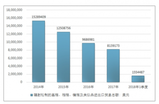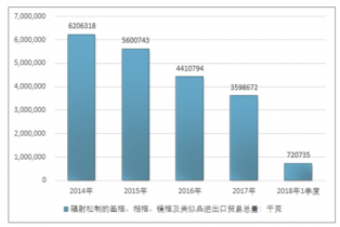 2014-2018年1季度輻射松制的畫(huà)框、相框、鏡框及類似進(jìn)出口貿(mào)易總額走勢(shì)圖(單位:美元)