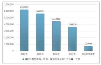 2016年我國(guó)輻射松制的畫(huà)框、相框、鏡框及類似品進(jìn)出口貿(mào)易總量4410794千克,2017年進(jìn)出口貿(mào)易總量3598672千克;2019年1季度進(jìn)出口貿(mào)易總量720735千克。
