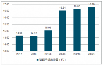 2017-2022年全球智能手機(jī)出貨量圖