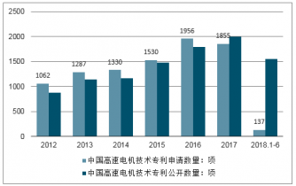 2012-2018年中國高速電機(jī)技術(shù)專利申請(qǐng)、公開數(shù)量統(tǒng)計(jì)