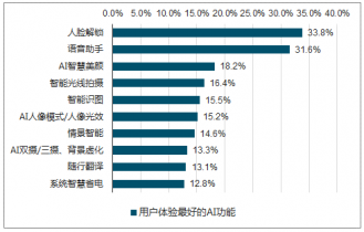 中國AI手機(jī)用戶在中外手機(jī)品牌選擇中,用戶選擇使用國產(chǎn)品牌,其中以華為、小米、OPPO,vivo等品牌最具代表性,在人工智能推動(dòng)的新一輪變革中,國產(chǎn)手機(jī)品牌與國際巨頭站在了同一起跑線;在功能方面,語音助手、人臉解鎖、智能光線拍攝、智能美顏和智能識(shí)圖是中國AI手機(jī)用戶最經(jīng)常使用的TOP5AI功能,結(jié)合中國消費(fèi)者對視覺效果有偏好的需求特性,以計(jì)算機(jī)視覺為基礎(chǔ)的圖像處理類功能,成為行業(yè)探究方向。