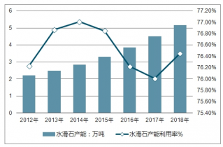 2012-2018年中國水滑石產(chǎn)能及產(chǎn)能利用率走勢