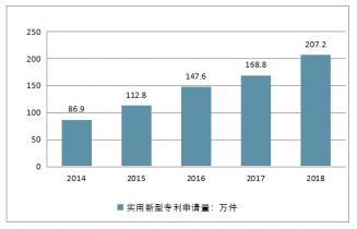 2014-2018年中國實用新型專利申請量走勢