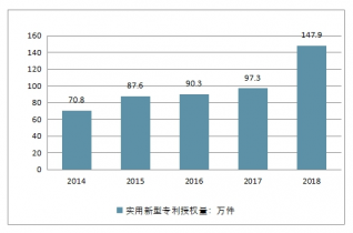 2014-2018年中國實用新型專利授權(quán)量走勢