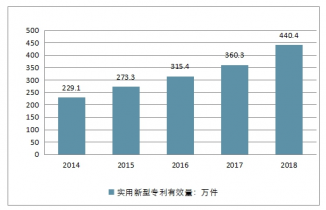 2014-2018年中國實用新型專利有效量走勢