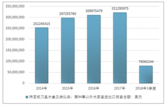 2016年我國珠寶或刀具木盒及類似品;第94章以外木家具進出口貿(mào)易總額309975479美元,2017年進出口貿(mào)易總額321295975美元;2019年1季度進出口貿(mào)易總額79065244美元。