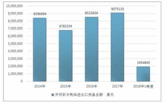 2016年我國天然軟木制品進(jìn)口總額7552853美元,2017年進(jìn)口總額8382584美元;2019年1季度進(jìn)口總額1847408美元。