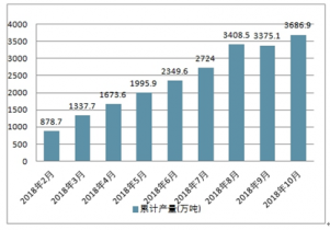 2019年2-10月中國鋁材各月累計(jì)產(chǎn)量走勢