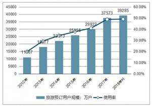 2012-2018年中國旅游預(yù)訂用戶規(guī)模及使用率走勢